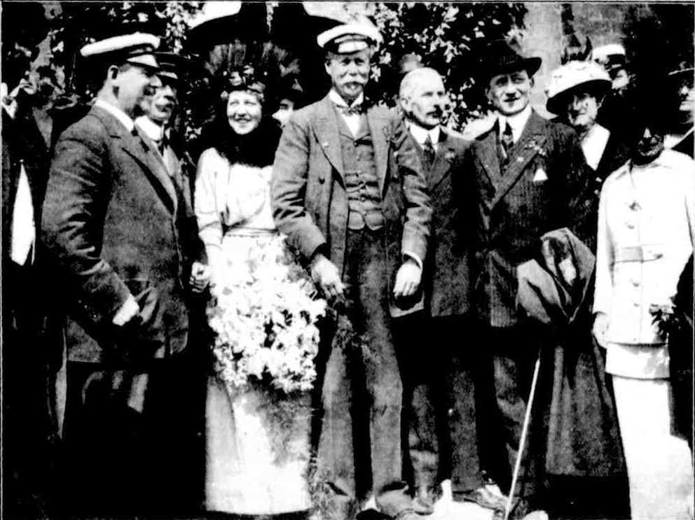 Guests on Erin, Bermuda. Lord Hardincke, Walter Marks, Colonel Neill, Commander Hamilton, Commander Gooling RBYC and Mayor of Bermuda. August 1914. Image courtesy of the Mitchell Library, Glasgow.