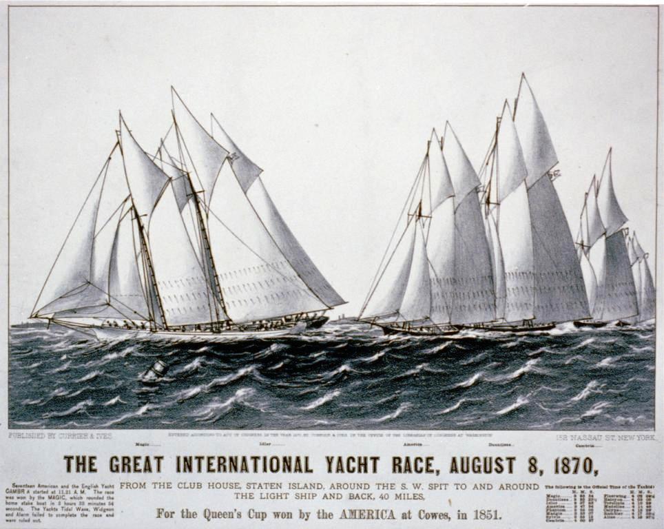 In historic importance this first race for the Royal Yacht Squadron Cup now known as the America’s Cup, surpasses all other events of yachting. Its influence on the sport at large, on the progress of design, construction, rigging and sail-making can hardly be estimated. It revolutionized the design of British yachts and marked the beginning of real yacht racing, or perhaps, more correctly speaking, the systematic racing of yachts built for that purpose as well as for cruising.