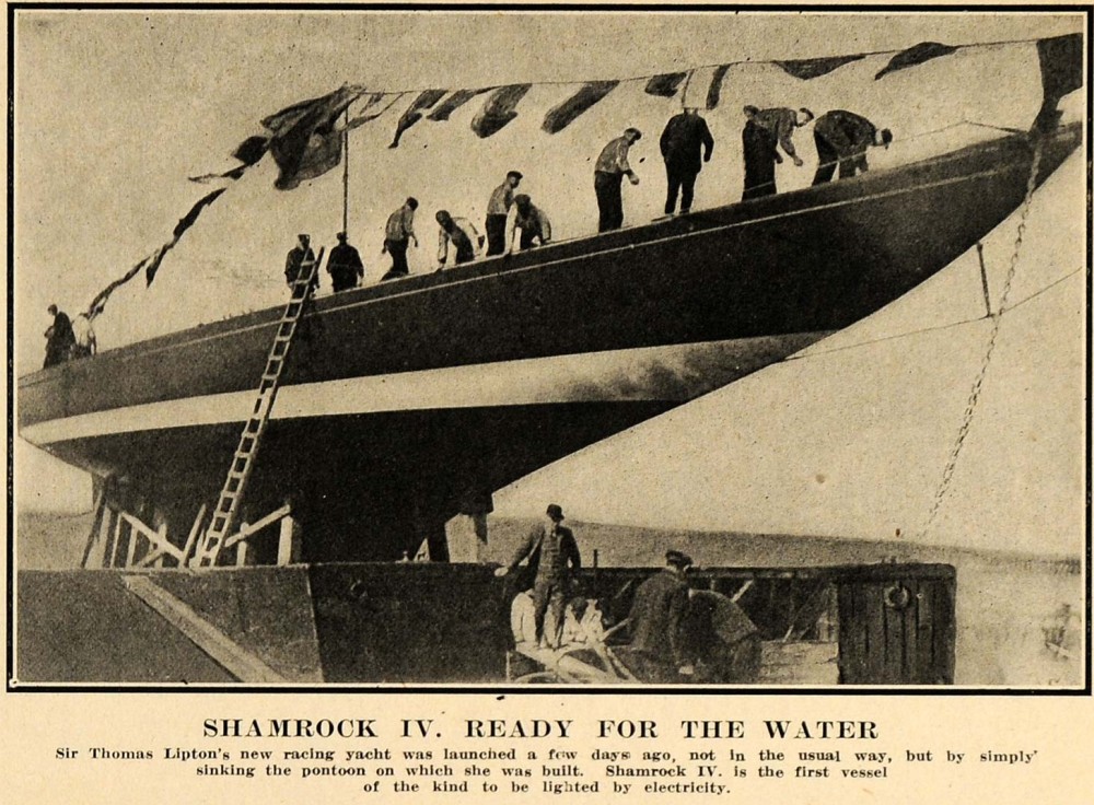 Photo Sport and General. To Content the America Cup : Sir Thomas Lipton's Shamrock IV., recently Launched at Gosport (Eng.). (1914, July 1). Sydney Mail (NSW : 1912 - 1938), p. 24 (NEWCASTLE & DISTRICT SUPPLEMENT). Retrieved from http://nla.gov.au/nla.news-article166253592