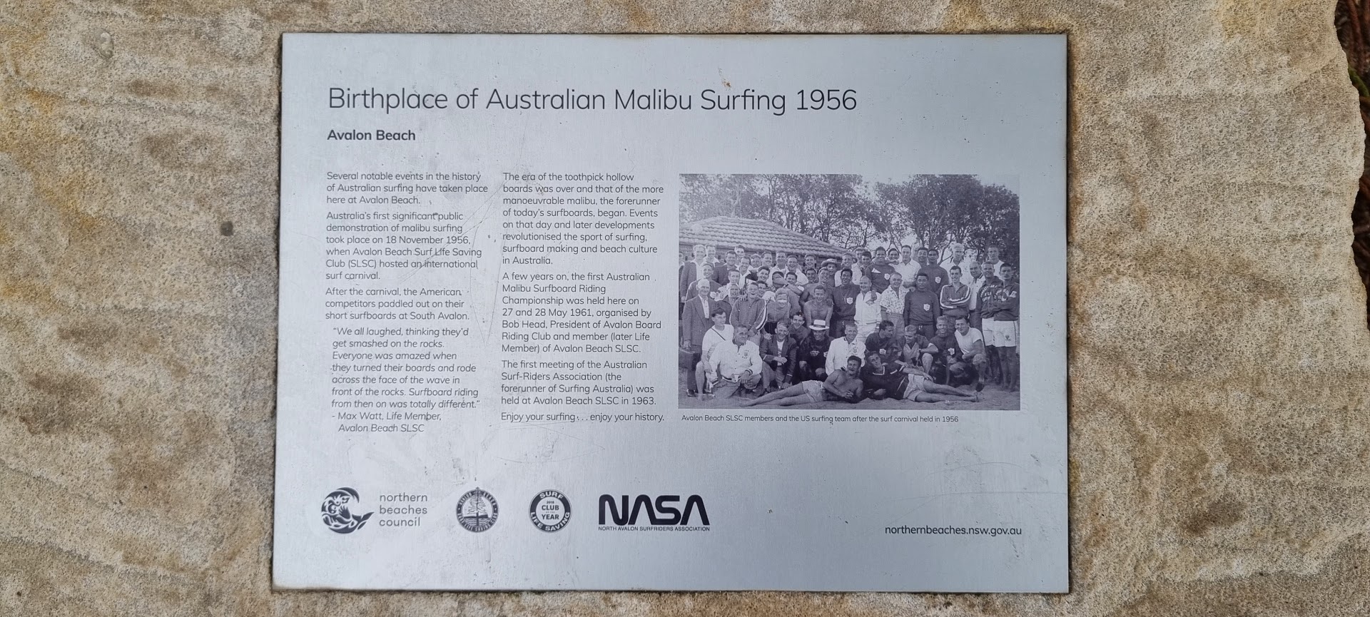 Warren noted that they had both competed in the 1956 surf carnival when one of the first significant displays of Malibu surfboards in Australia took place, as commemorated on a plaque outside the surf club.