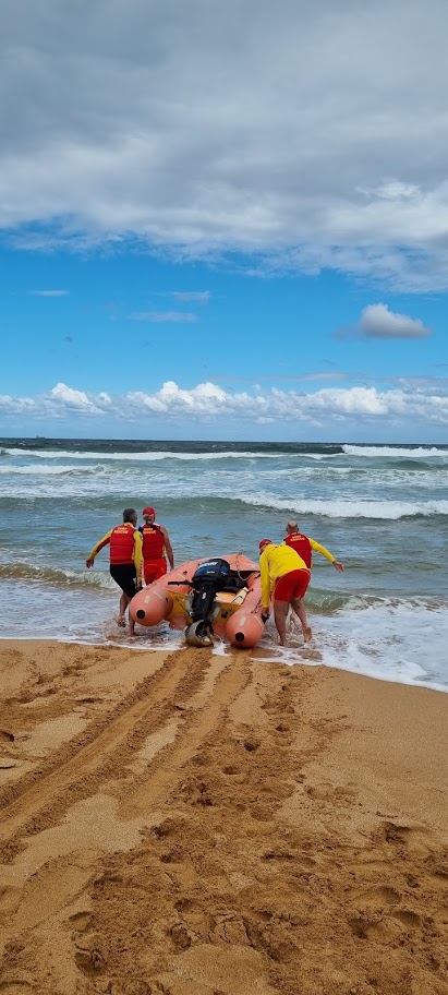 Alan Moran (Driver and IRB Captain) and Ashley Brown (Crew and Club Treasurer) drove the IRB straight out from the beach through 8 or 9 lines of non stop swells, in a display of great skill and surf knowledge.