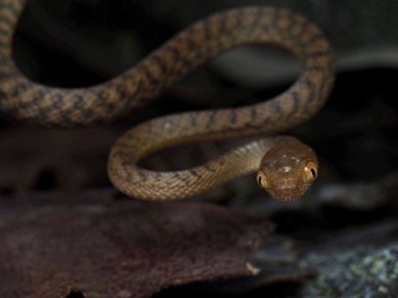 Young brown tree snake (Boiga irregulris) Photo by Jack Fegan