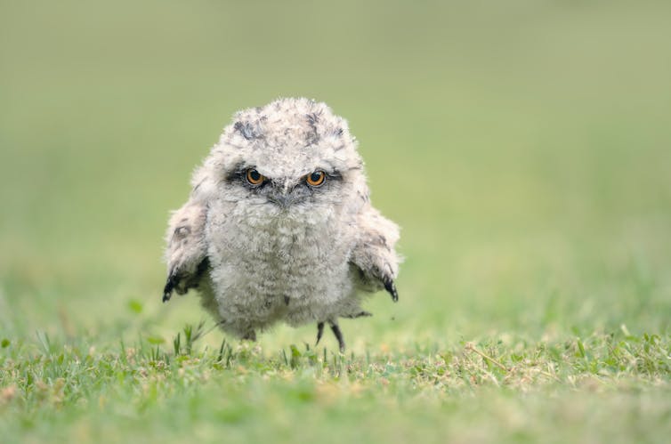 Although tawny frogmouths are often referred to as owls, they are not. But they do resemble owls with their large eyes, soft plumage and camouflage patterns, because both owls and frogmouths hunt at night. This phenomenon (where two species develop the same attributes, despite not being closely related) is called “convergent evolution”.