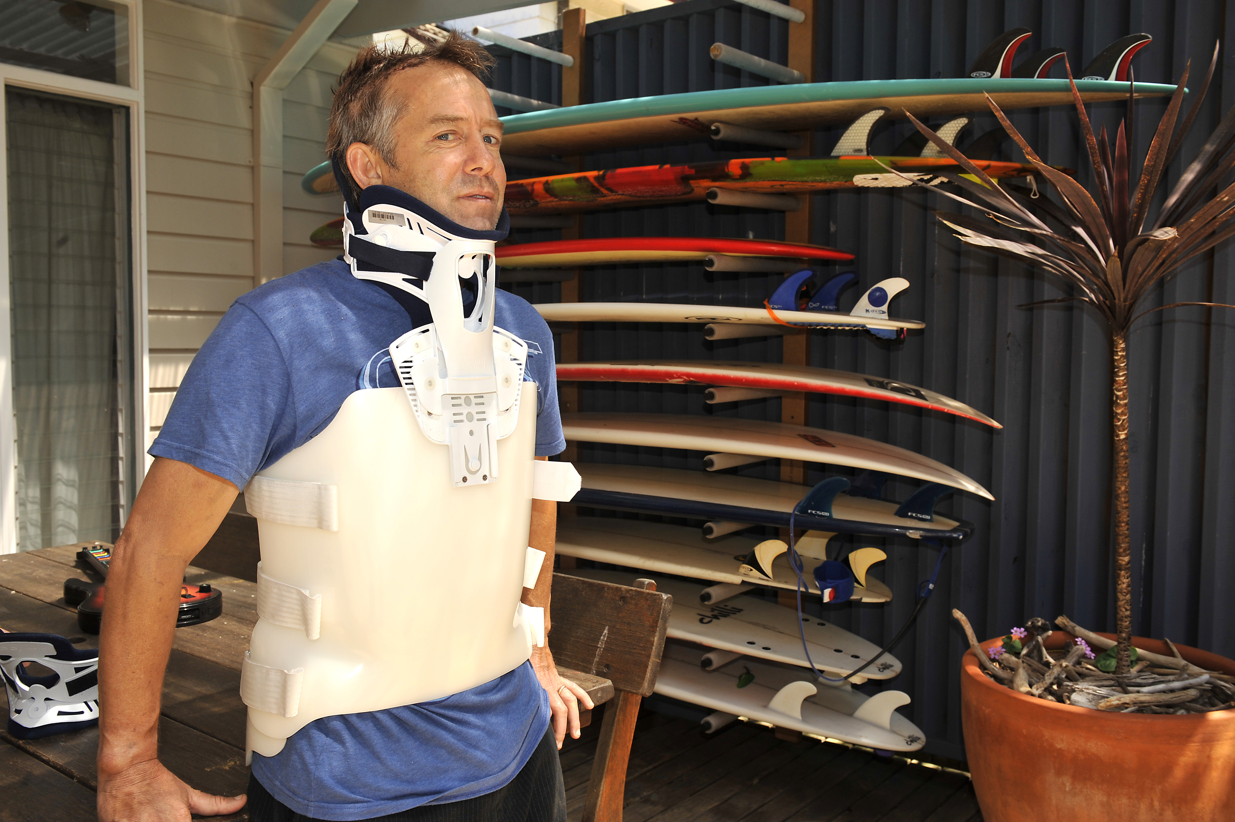 I went into Spinal Trauma at the Royal North Shore and they made me a special brace for my neck and body. I had this spinal brace on for about three and a half months. When I was able to take the brace off and go back into the water, gingerly, the first thing I did was swim out with some goggles just to reacquaint myself with the spot. I love this spot, I surf it anytime I can and still love it now – it’s my favourite little spot at North Avalon. So I swam out and looked at the reef and tried to figure out where I’d hit my head and took myself through the process of thinking about it – and that’s kind of how I got back. I started riding a stand-up paddleboard and then a shorter board and made my way back to a shortboard and back to a similar level to what I was prior to that.
