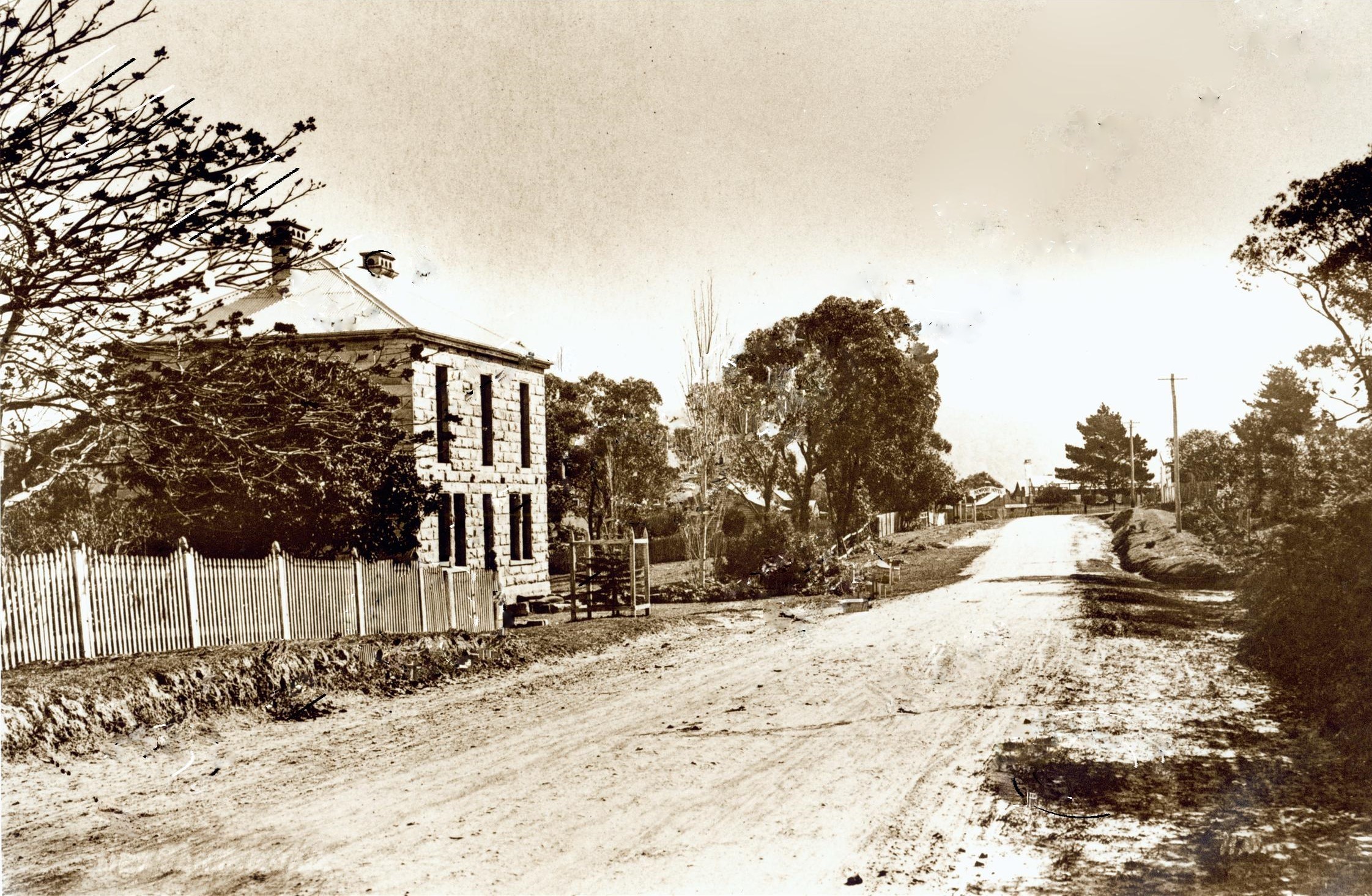Guy Jennings in his book ‘A History of Newport’ reports this two storey stone house to the left in picture was never finished and became a playground for children. Fence opposite is that of Newport Public School. The unfinished house described above, soon after Mr Houreax's passing and offered for sale, and that in this photograph, seem very alike. Scrutiny of early Land Maps also points to this structure.