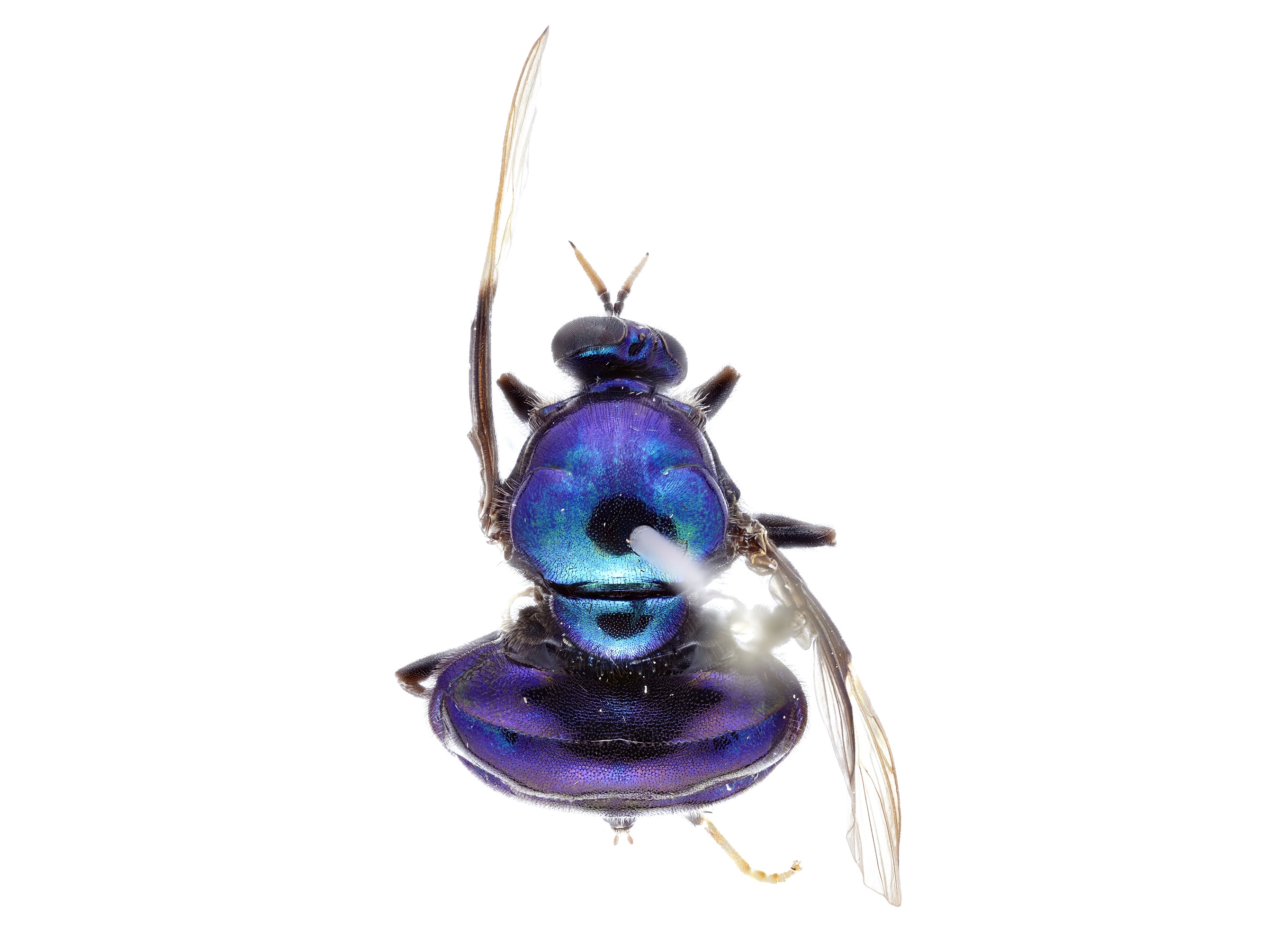 View from above (dorsal view) of the new opal thorn soldier fly named after RuPaul, Opaluma rupaul. Photo credit: Bryan Lessard, CSIRO