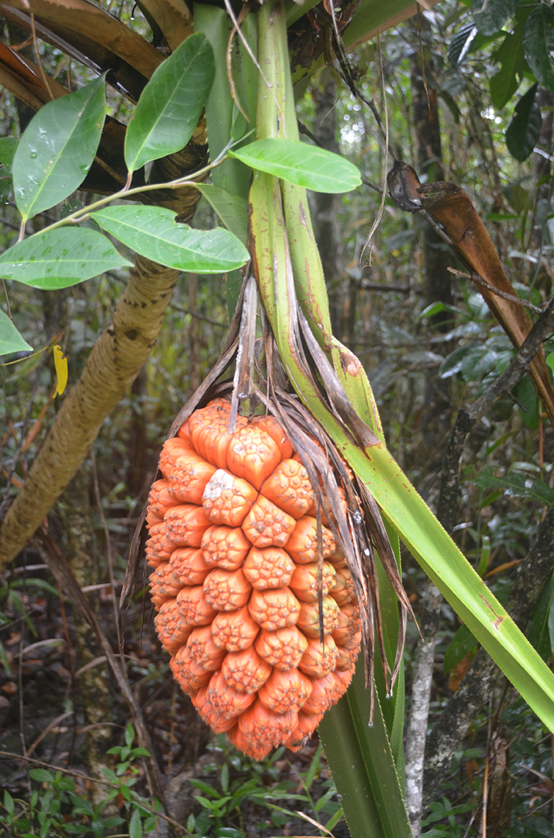 The newly named Pandanus grayorum tree from the Wet Tropics south of Cairns grows up to 20 metres tall and produces 40 centimetre long, orange-coloured fruit. © FA ZICH