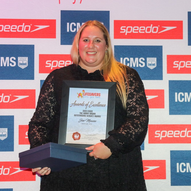 The Harry Ragan Outstanding Service Award Congratulations went to Jessica Menzies Newport Surf Life Saving Club. This annual award is for outstanding service by a Board of Education member for their contribution to Education and Support services, and the recipient is selected by the Director of Education and Director of Lifesaving. Jess was nominated for her commitment and dedication not only for the quality training and assessing but contributing to training and assessment processes behind the scenes.