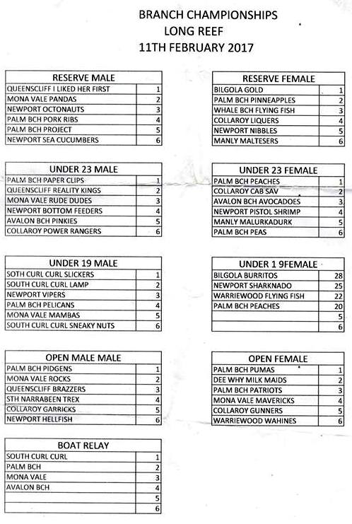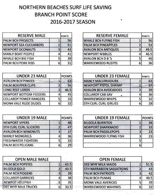 Manly's strong Juniors have placed them first overall prior to the Masters and Life saving Championships taking place, while Newport's Opens, recent Summer of Surf victors, have won and won and won again this year. Mona Vale (261 points - 4th), Newport (225 points - 5th) and Avalon (132 points - 7th) Juniors have all placed in the top 10, securing points as well were the youngsters from Warriewood and Bilgola.