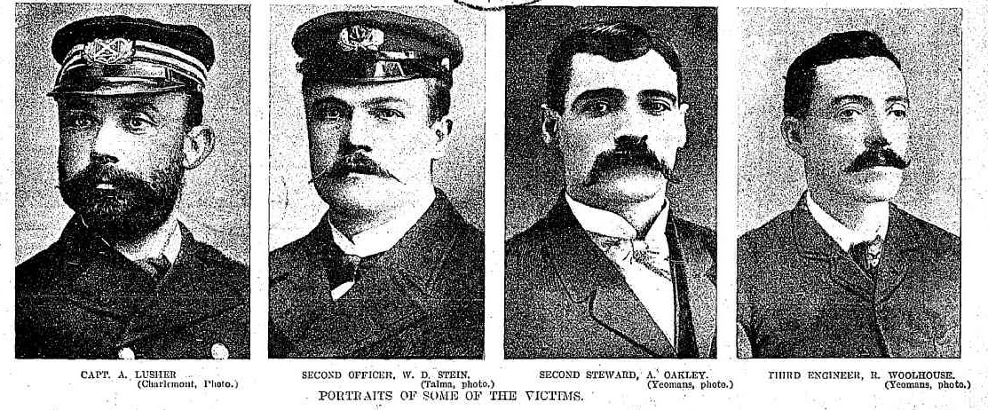 Late on Monday Captain T. L. Webb, the director of Huddart, Parker, and Company, got word that a ship's boat, bearing the company's name, and wreckage, 'was coming ashore at Cronulla Beach. The captain promptly left by the 11.40 p.m. train for Kogarah, and from there drove to Sutherland. Finding he could not get across there, he drove round to Cronulla, and at daybreak yesterday was on the beach. He found the whole beach strewn with broken timbers, hatchways, fittings, lifebelts, and the remains of lifeboats. The wreckage extended as far north as Boat Harbour, a distance of five miles, and, although some hours were spent in turning over the wreckage, no absolute proof of the vessel's name could be found which might identify her, until the searchers discovered a big parcel box — a box into which parcels are dumped for carrying from port to port — on which were the words 'S.S. Nemesis' over Huddart Parker's stamp.