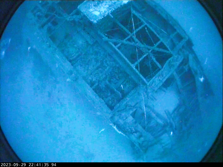 Drop camera image from SS Nemesis survey by RV Investigator - View of wreck on seafloor. Image: CSIRO.