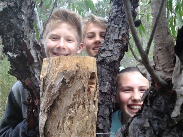 Every week Year 7 student Ethan Stidwill, Year 8 Hamish Cumming; and Year 5 students Ruby Cumming and Luke Stidwill scamper up the escarpment to check for signs of inhabitants in the 3 nesting boxes they have attached to specific trees in the bush. Once a nest is found the students will borrow and set up a community wildlife camera and hopefully record the maker of the nest.