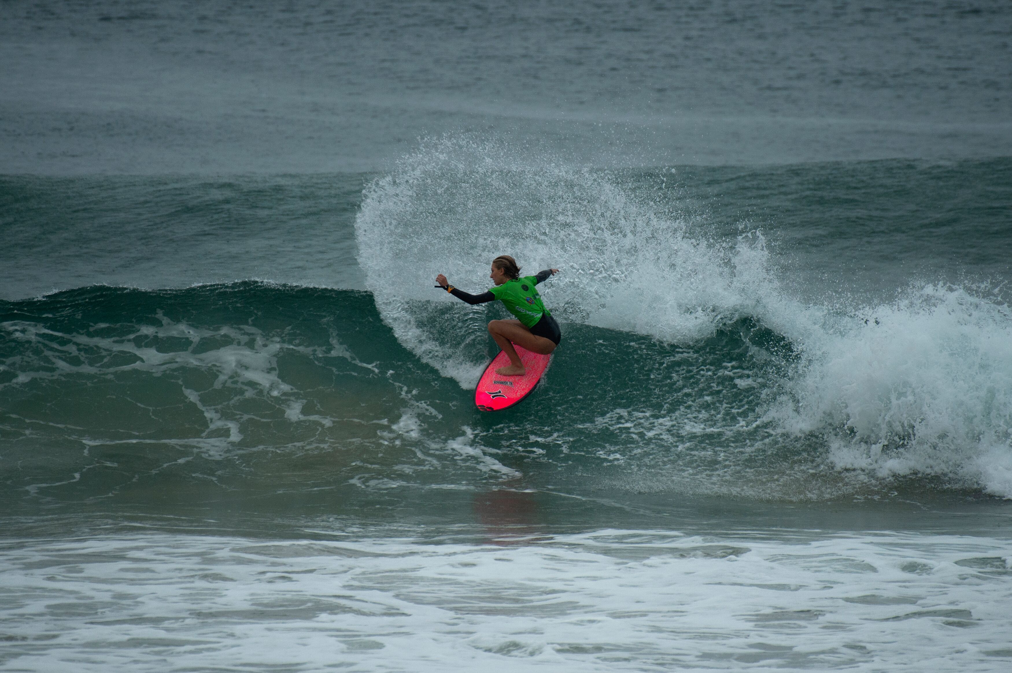 Having claimed the last two Pro Junior events in Australia, Molly Picklum (Shelly Beach, NSW) made it clear she was keen to bag herself a hat-trick, putting on a consistent performance in her opening heat. Picklum remained busy in the heat, catching a total of eight waves over the course of the heat and finished with a 12.85 two-wave total.