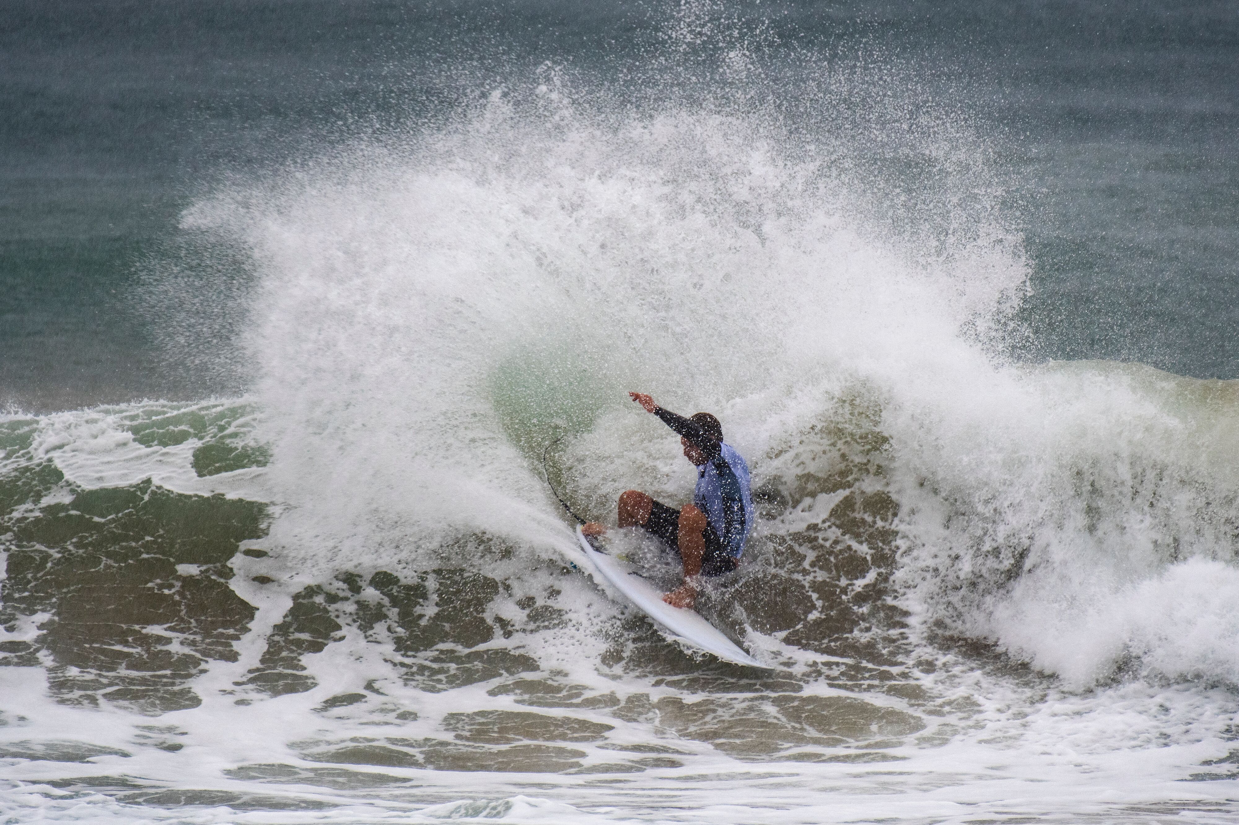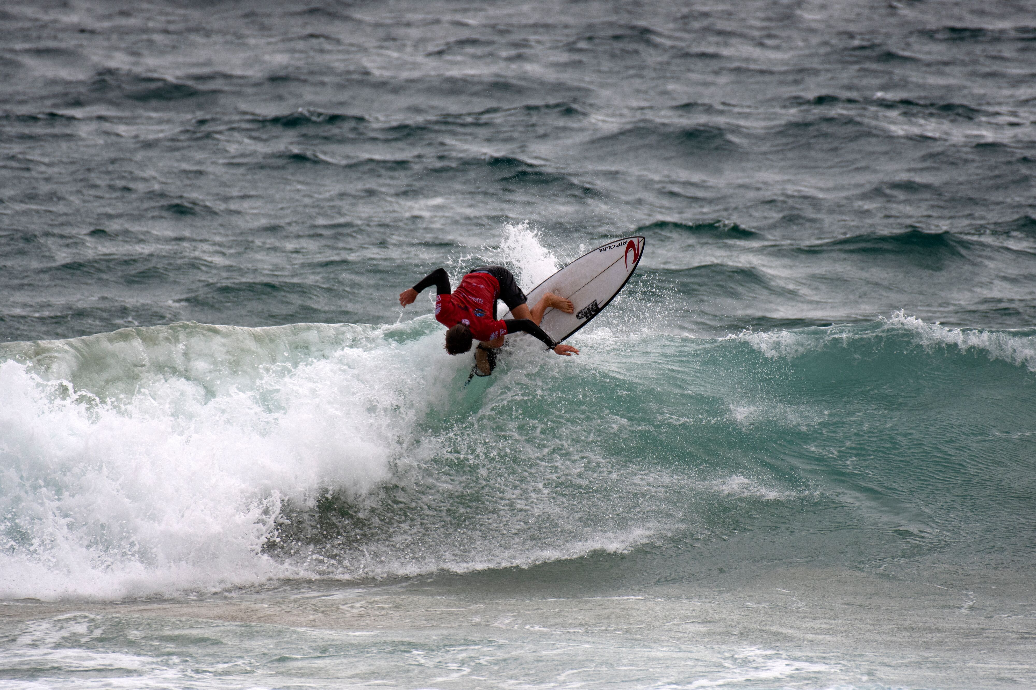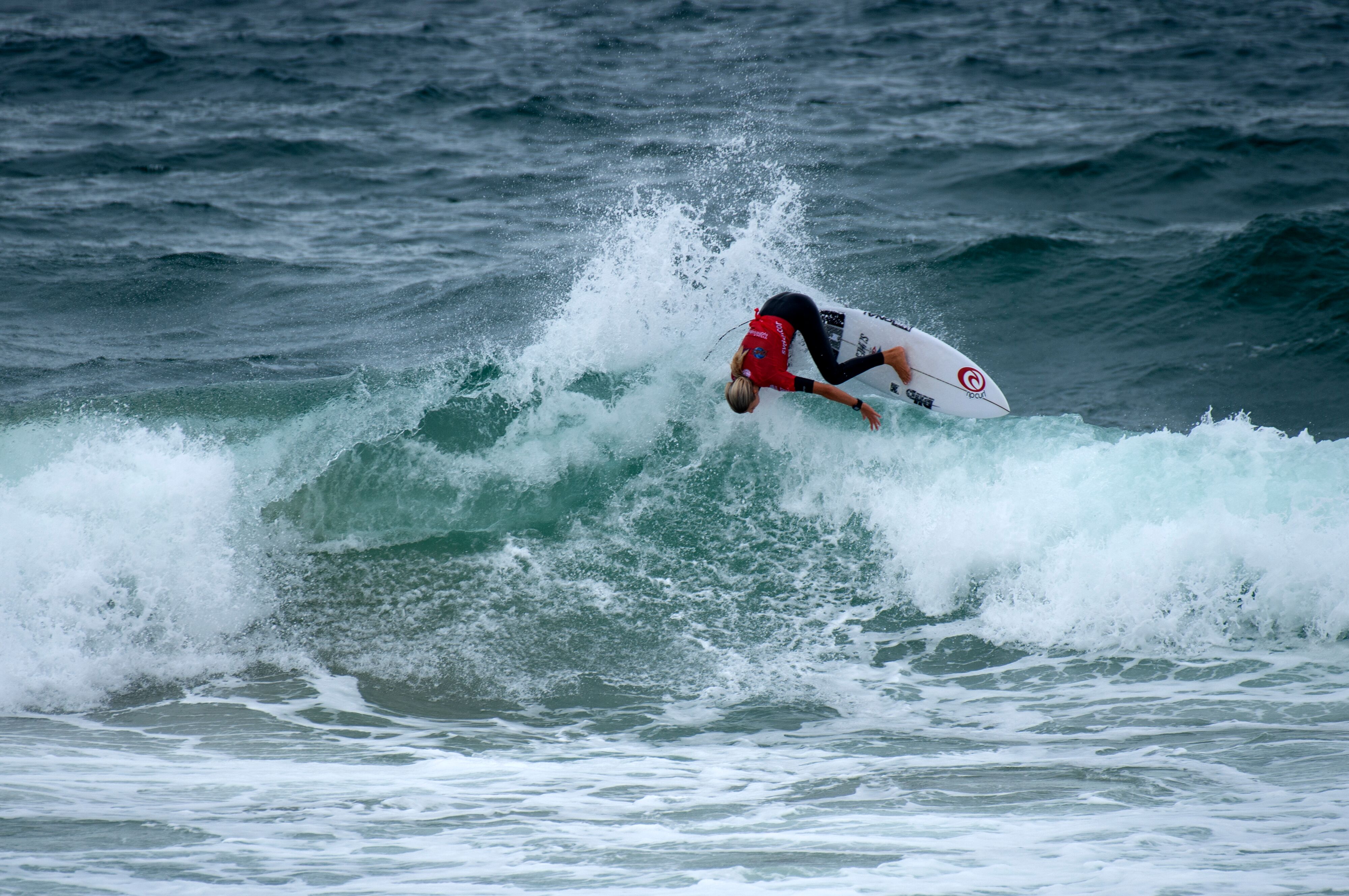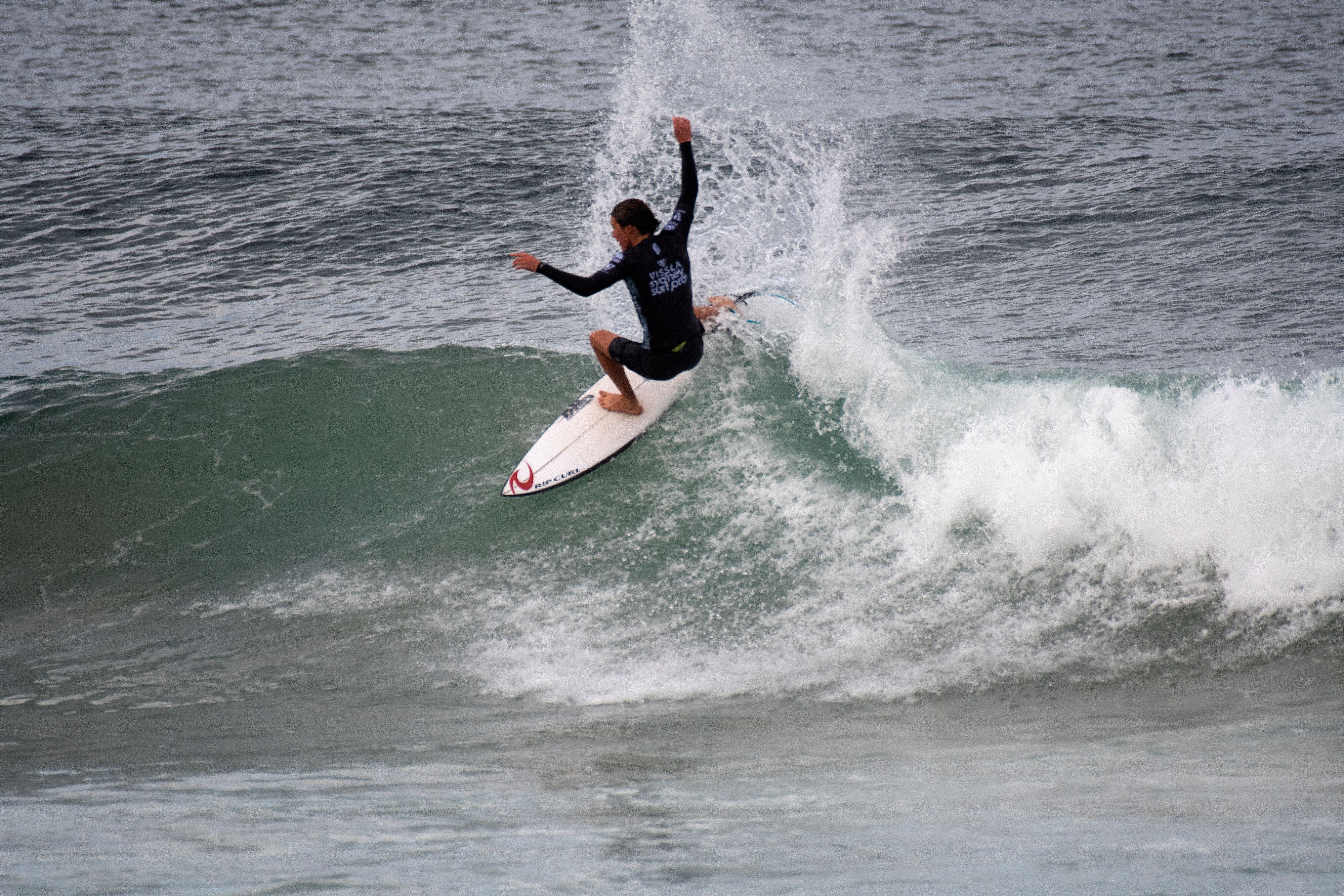 Local Manly surfer George Pittar (Manly, NSW) showed his knowledge of the shifting beachbreak conditions, picking the eyes out of the best waves of the heat and as a result, was rewarded with a solid 15.65 two-wave heat total. Pittar was greeted by much local fanfare on the shoreline from his local North Steyne Boardriders Club following the heat.
