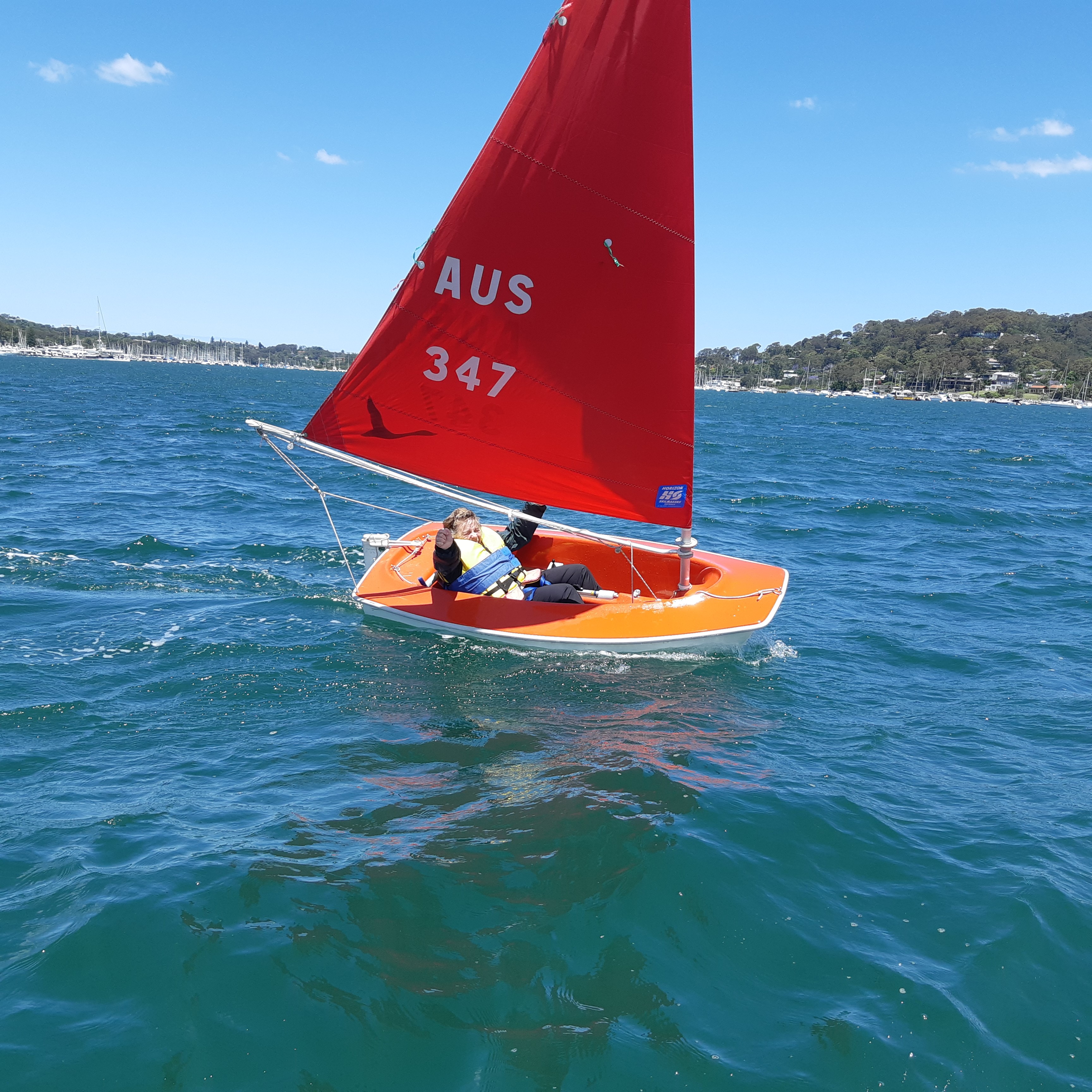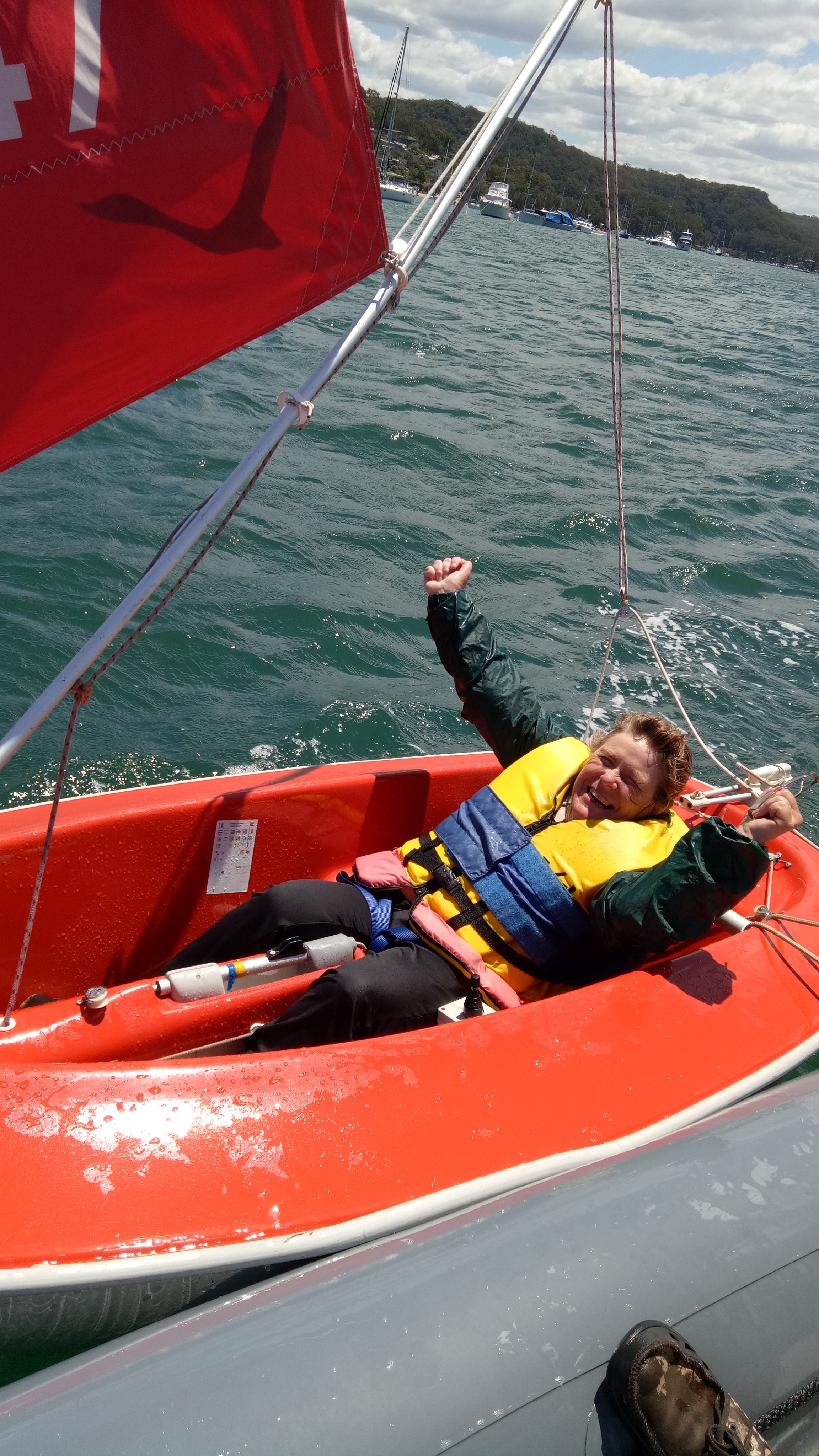 Sailability Pittwater member Maria, who was born with cerebral palsy, tackled blustery southerly winds and dead calm to sail solo from Winnerrerremy Bay (Rowland Reserve) and around Scotland Island.