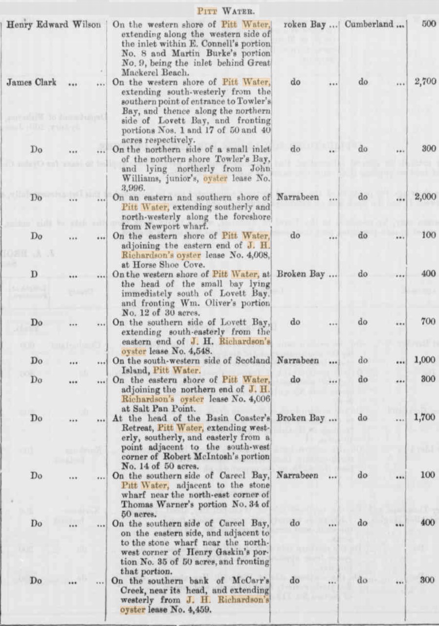 Early Photographer of Pittwater, Charles Kerry bought Lot 12 and then onsold to G Wickham with that holding going to A E Wickham Kerry: Primary Application Number: [PA 26963]: - 12 acres, 1 rood and 24 perches - on 'South Beach':