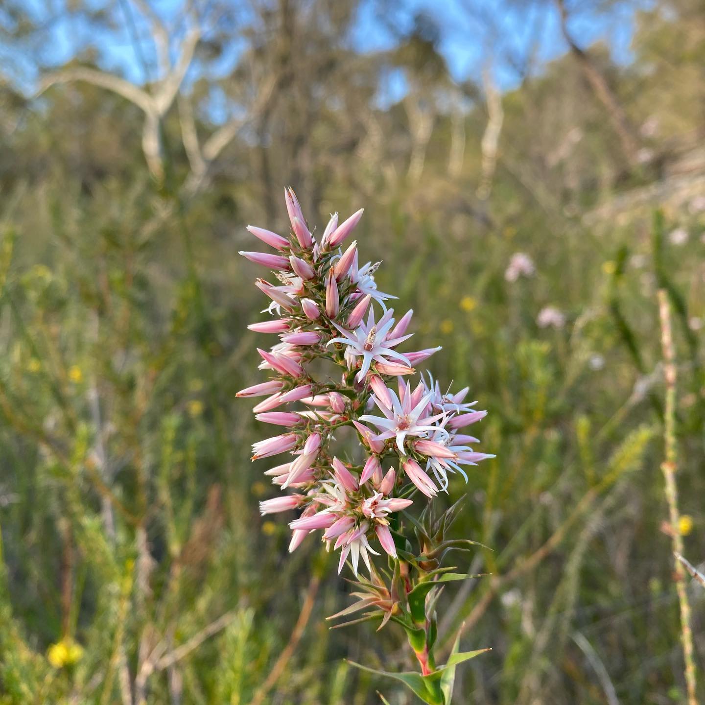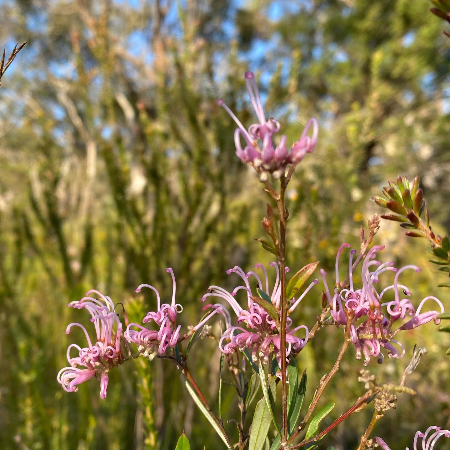 Along the edge of the hanging swamp and wet heathland you can notice how the vegetation changes - the same flowers Selena has photographed elsewhere have another kind of shade of pink or where there is a watercourse, a vibrancy meets the eye.Plants that thrive in wet live here; sphagnum moss, sword grass and the green-flowering swamp banksia, Coral and pink swamp heath are dotted through the heathland - or as Selena calls them, 'meadow flowers' - bush meadow flowers.