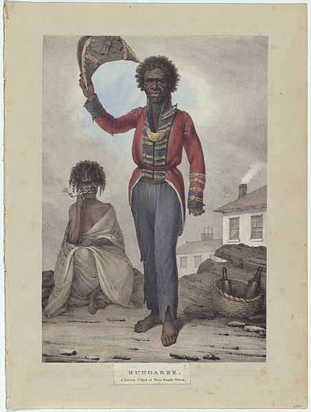 On this occasion, sixteen of the Natives, with their wives and families were assembled, and His EXCELLENCY the GOVERNOR, in consideration of the general wish previously expressed by them, appointed Boongaree (who has been long known as one of the most friendly of this race, and well acquainted with our language), to be their Chief, at the same time presenting him with a badge distinguishing his quality as "Chief of the Broken Bay Tribe," and the more effectually to promote the objects of this establishment, each of them was furnished with a full suit of slop cloathing, together with a variety of useful articles and implements of husbandry, by which they would be enabled to proceed in the necessary pursuits of agriculture : - A boat (called the Boongaree), was likewise presented them for the purpose of fishing.