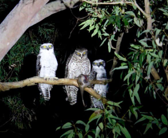 Powerful owl and chicks at Belrose and 'Fuzzy Butt' the Wombat of Ralston Avenue, Belrose.