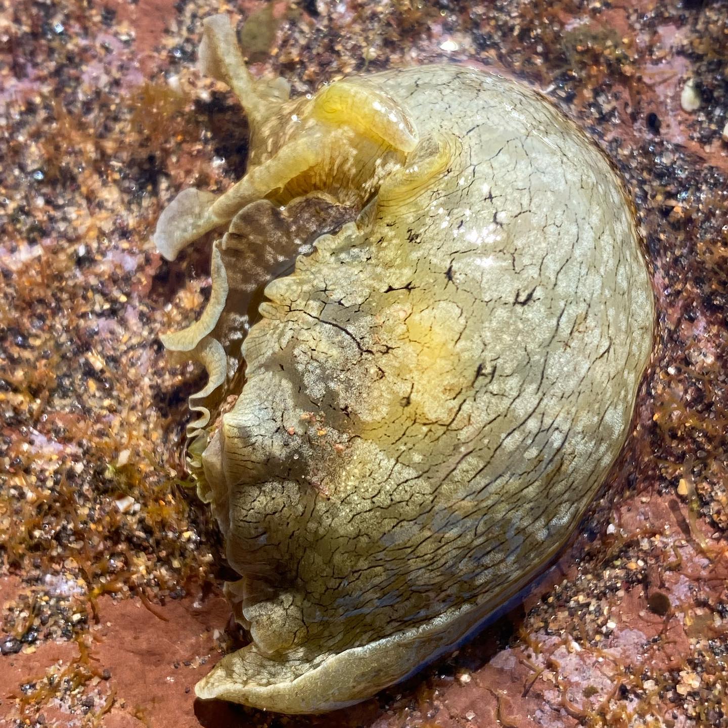 Elephants snail (mollusc): named for the way they swing their tentacles from side to side; This is what they look like from on top and from underneath: