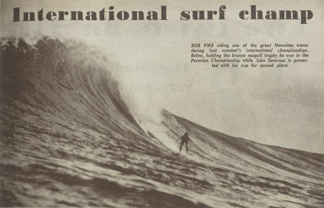 Bob, however, got a lucky break soon after the Hawaiian championships were over. John Severson, a champion Californian rider who was visiting Hawaii for the surfing titles, offered Bob a trip to Peru.