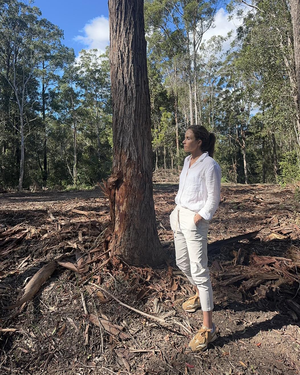 Pittwater MP Jacqui Scruby at the GKNP site, April 2025 - the destruction is continuing. Photo; via FB