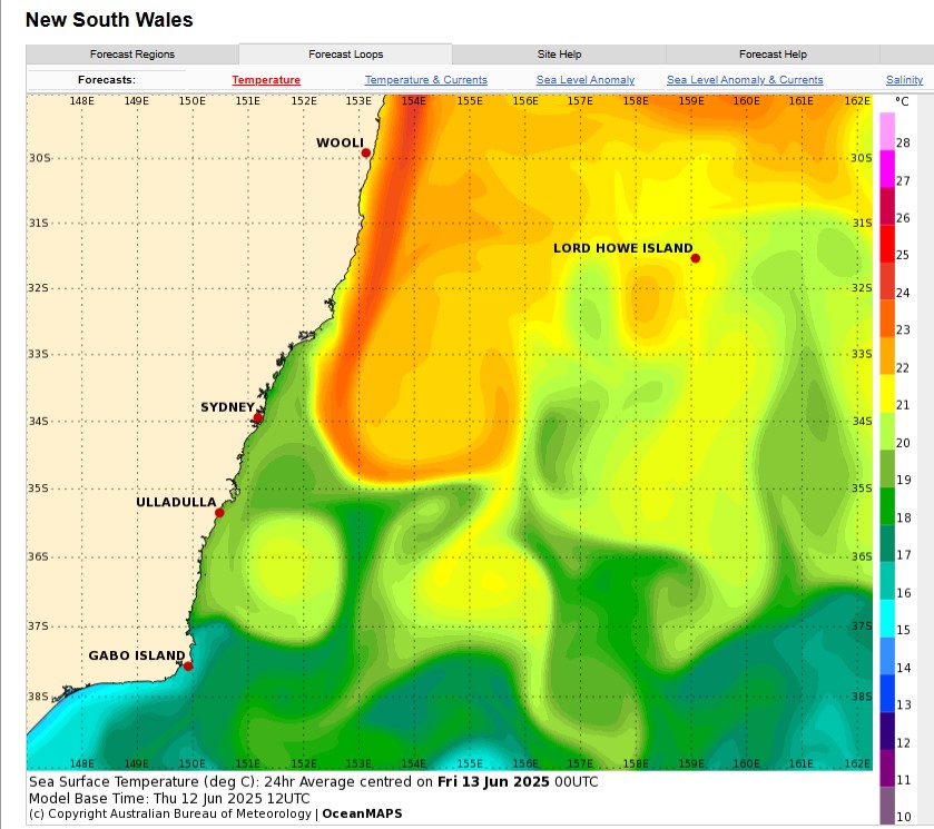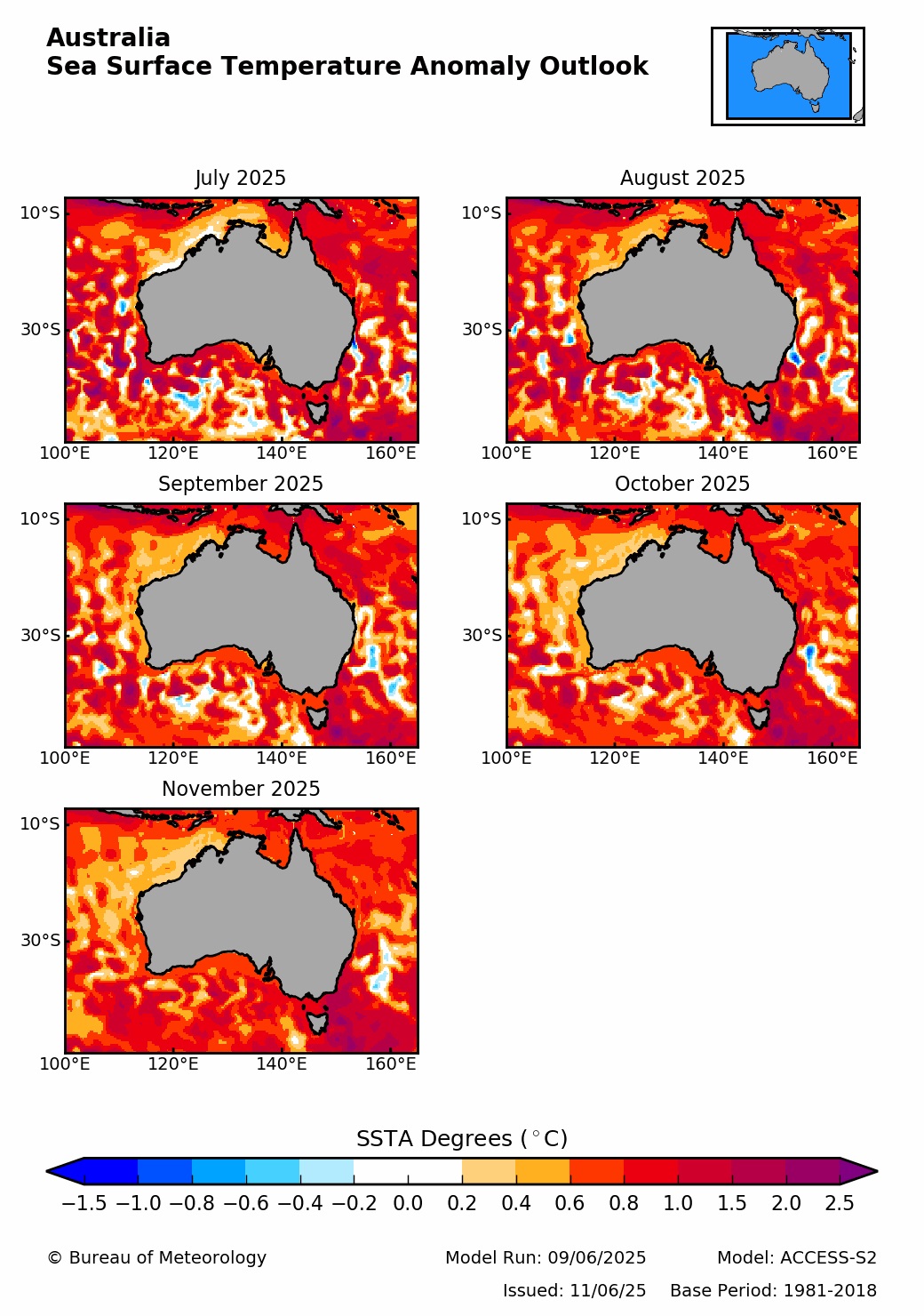 BOM: Sea surface temperature forecast maps update June 11 2025
