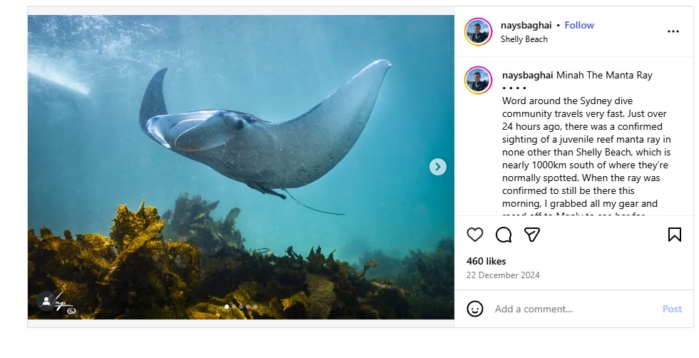 And it’s not just speculation, “The intense social media interest generated by a recent sighting of a manta ray off Manly, Sydney highlights the importance that these findings will have for NSW dive tourism operators and the public,” Dr Davis observed.