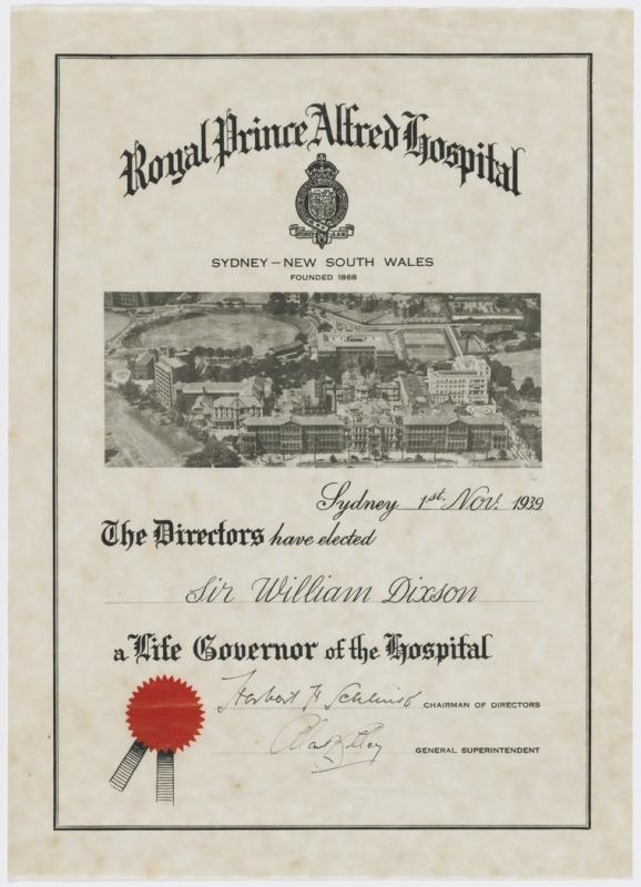 At a meeting of the board of management of the Royal Prince Alfred Hospital Sir Samuel Hordern was elected chairman Dr H H Schlink vice chairman and Mr R M Clark honorary treasurer In addition to the foregoing Sir Allen Taylor Dr E W Fairfax Alderman A McElhone and Messrs D Benjamin R S Henderson N McCorquodale W S Morrison Orwell Phillips and H E Ross were elected to the house committee The finance committee will consist of the chairman vice chairman honorary treasurer and Mr H E Ross Sir Albert Gould who decided not to nominate foi re election to the board as the subscribers representative has had an un-broken period of service since 1899 In 1900 and 1901 he was honorary treasurer of the institution succeeding the late Sir James Reading Fairfax in that capacity Mr T A J Playfair fills the vacancy caused by Sir Albert’s retirement.