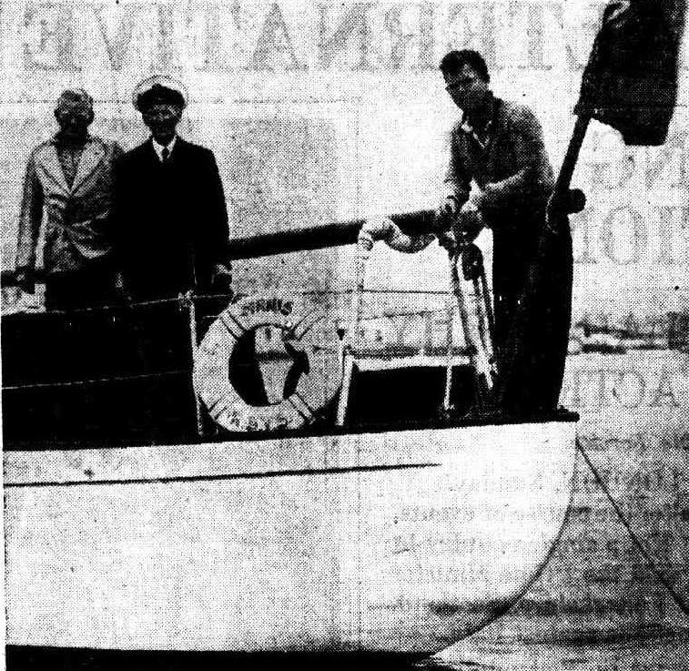 A unique feature is a 50-year-old binnacle, originally fitted to a barque trading to Australia, purchased in a second-hand shop, which will be relied upon in the navigation. The yacht, which is staysail rigged, is 53 feet 6in. long, with a beam, of 13 feet 6ins., and is powered (in case of emergency) with an auxiliary 18-horsepower petrol engine. She carried 300 gallon's of water below; deck and 52 gallons of petrol on deck, besides nearly a ton of stores.