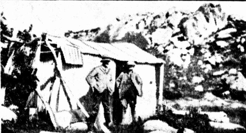After resting for a few days Macalister, with two of the Sydney party, undertook to open up communication with Mr. Wragge's Observatory on Kosciusko, where Mr. Bernard Ingleby, one of the observers, has been alone for the past fortnight. His two companions had visited Jindabyne, and being unable to return during the recent heavy storms, were camped in the Crackenback Valley, waiting for a break. Having decided to accompany the Sydney party back, a start was made on Friday.
