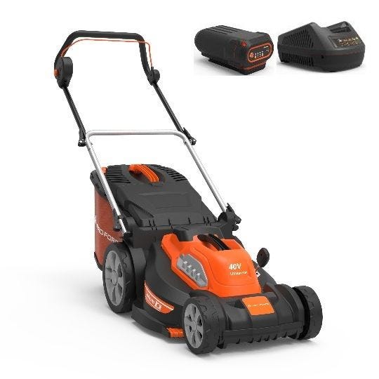 The new way to mow. The Yard Force G40A 40V electric lawn mower delivers the power you need for a clean lawn in a quiet, lightweight package. Weighing only 18 kilograms but sporting a 3200 RPM brushless motor and an impressive 16-inch cutting width, the G40A is ideal for small and medium lawns up to 500 m2. It’s all electric design means no priming or pulling – just one button and you’re ready to mow. The powerful 40V lithium ion-battery pack gives you all the time you need to get your lawn looking pristine, while the ultra-efficient charger gives you a full recharge in just two hours.