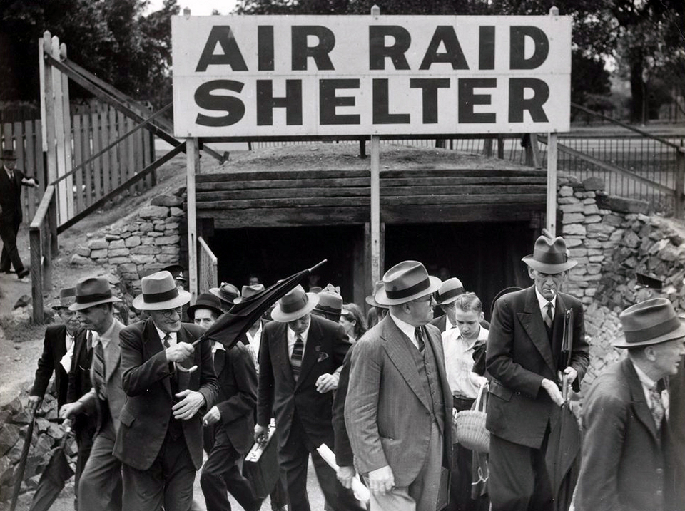 Crowds leaving a shelter in Hyde Park after the 'all clear' has been given c1942. Image courtesy of the State Library of Victoria [H99.201/3739](Argus Newspaper Collection of Photographs)