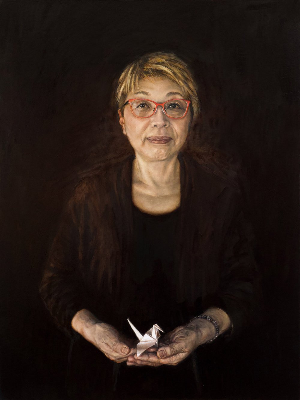 ''In 2022, she was one of 197 people in the world to be awarded the Japanese Foreign Minister’s Commendation for her contribution towards origami in Sydney and Australia-Japan cultural exchange. She was also awarded by the Consulate General of Japan, Sydney in 2016. Although Midori has made hundreds of thousands of paper cranes I wanted to feature her with just one crane crafted with deep care and respect emerging from the protective palms of the creator awaiting release into the world to symbolise hope and peace.