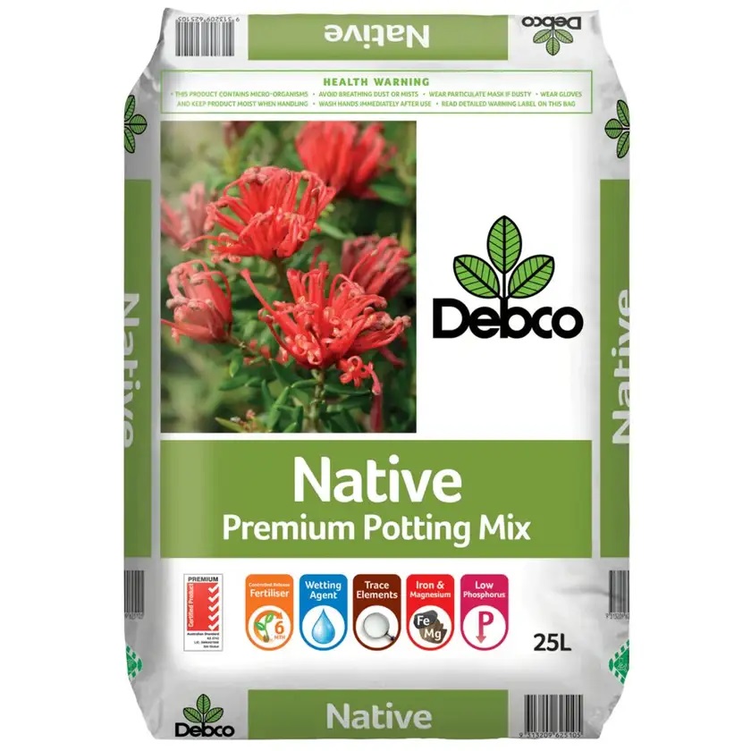 Debco Native Mix contains quality key additives to deliver optimal growth for a broad range of native plants including Proteas, Banksia, Wattle, Yuccas, Cordylines and Flaxes. Specifically formulated to promote healthy plant growth for more difficult native varieties. Recommended for all plants that prefer low phosphorus conditions.