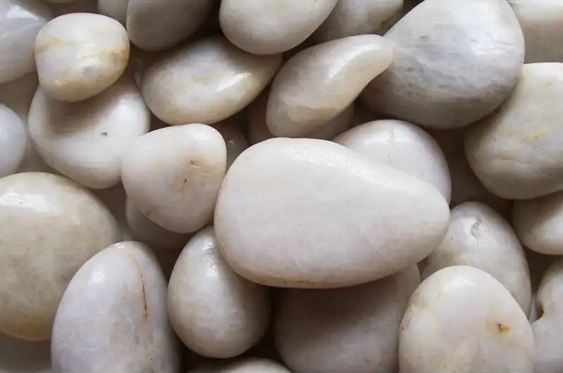 Glossy black colour finish. Polished stones. Prevents soil erosion. Perfect for landscaping & water features. Also available in white.