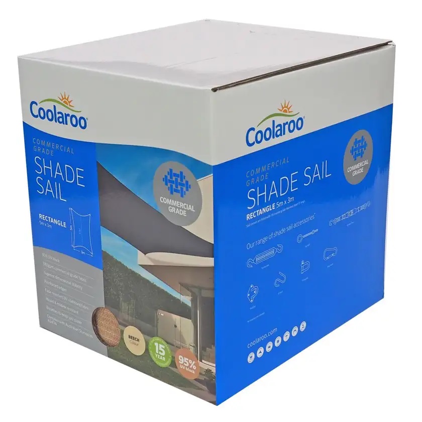 Coolaroo Shade Sail Commercial Grade Beech or Graphite 5 x 3m: $248.00