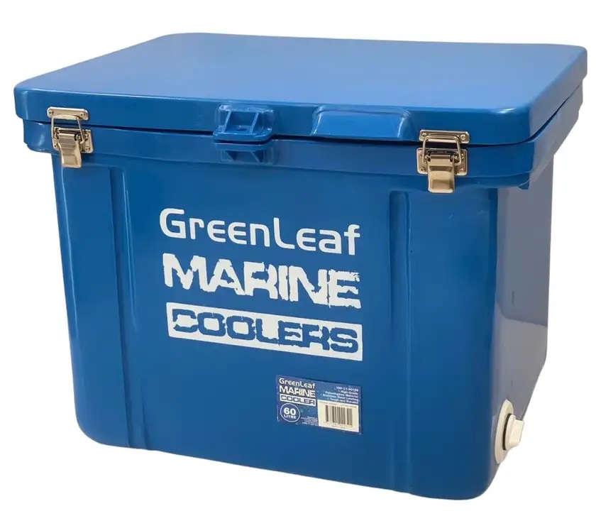 The Greenleaf 60 Litre Marine Cooler is made from food grade material and will keep your food and drink cold for up to 3 days making it ideal for camping and fishing trips. It has a strong and durable polyurethane casing with stainless steel clips to lock down the lid. It also features a drain plug to help remove excess liquid.