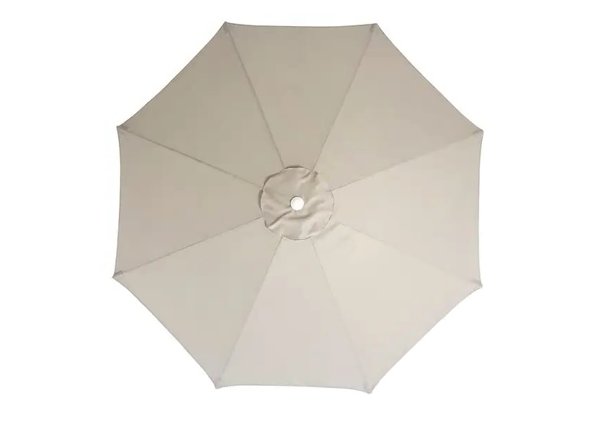 White powder coated aluminium frame with 8 ribs; 180g single-layer polyester canopy in taupe; UV50+ canopy provides solid protection; Tilt function increases versatility; Crank open/close system for easy storage; Reliable protection from the sun and rain.