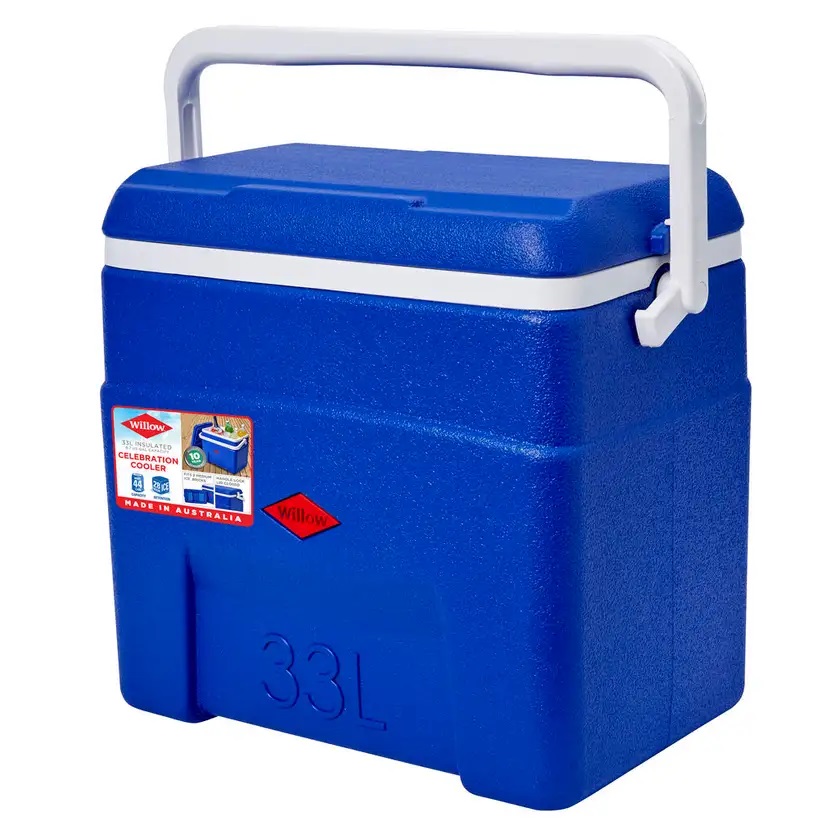 Includes: 33L capacity, holds up to 44 cans of drink; Retains ice for up to 28 hours; Dense insulation to keep contents cooler for longer; Pivot handle backwards to lock cooler closed, forwards to open; Tall design to allow upright storing.