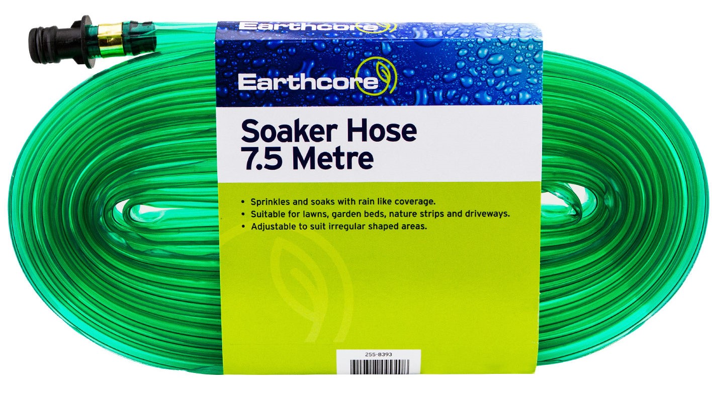 EARTHCORE 7.5M SOAKER HOSE $9.99; Ideal for spray pattern sprinkling or soaking. Also available: 15m - $16.00