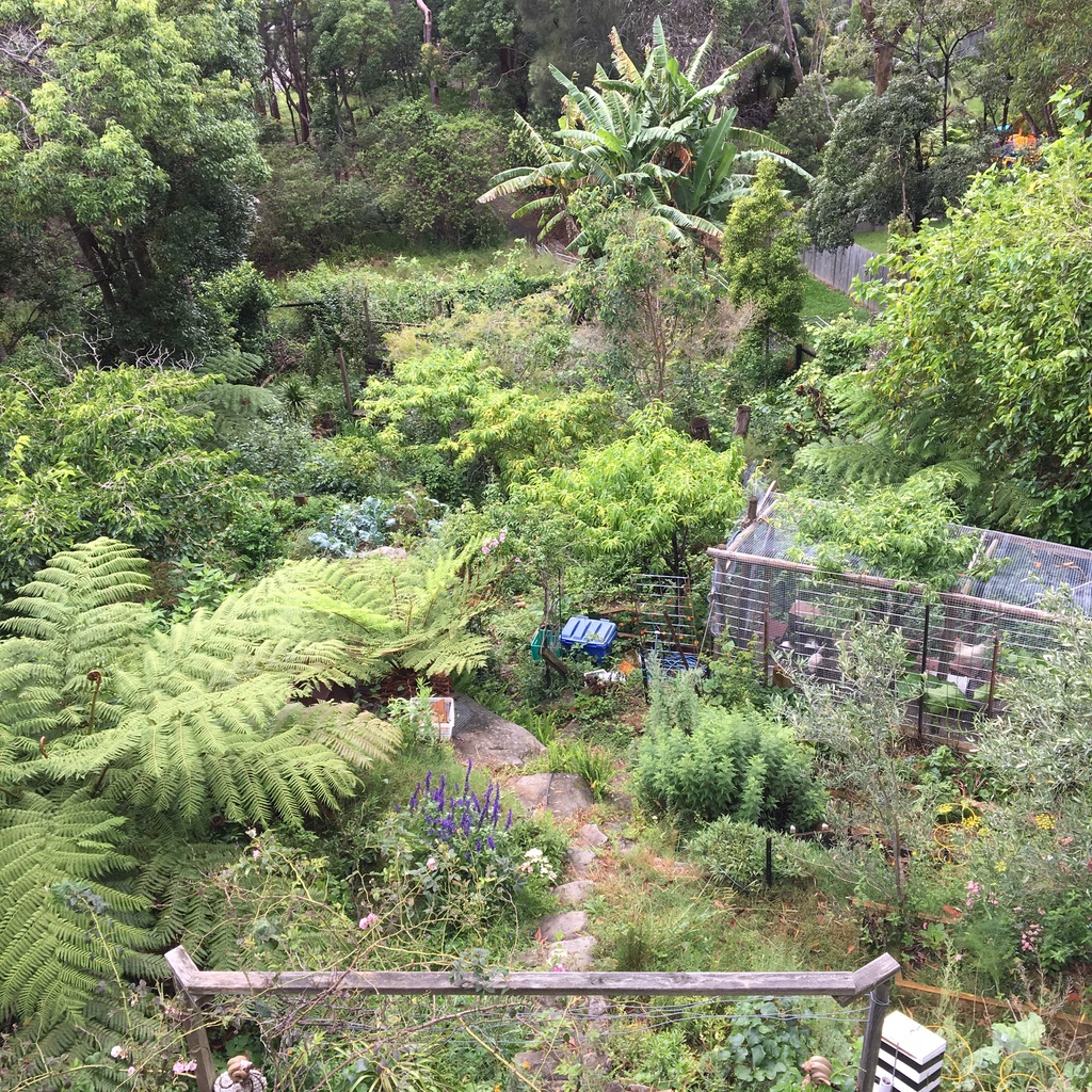 We have 1200 sq m permaculture garden with and a sustainable house. We have chooks, worm farms, composting, native bees, native bush tucker and medicine plants, edible fruit, vegetable and medicinal plants, water features, citrus grove, raised and no-dig garden beds, herb spiral, aquaponics, a green wall, rain water tanks, gravity fed watering.