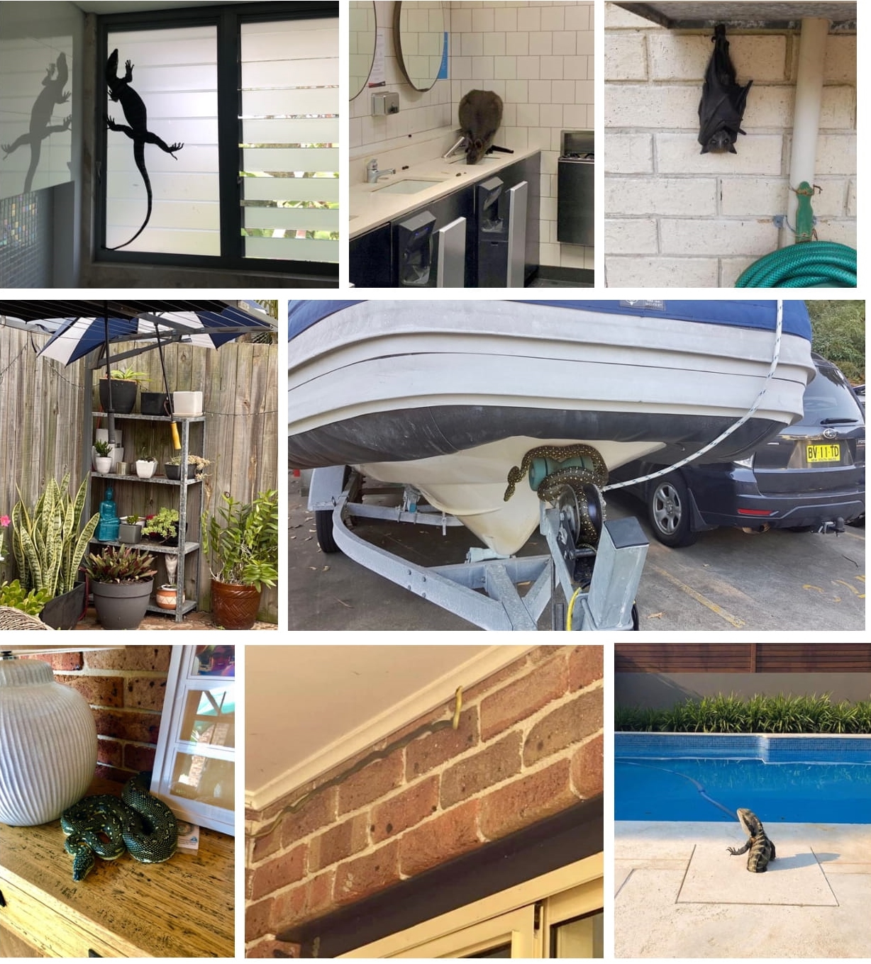 Goannas in bathrooms, wallabies in the mall, bats hanging from garden objects, barn owls in plant shelving, water dragons stuck in places that their bodies can go, but where their giant frog-legs can’t follow… and snakes in every conceivable place…!
