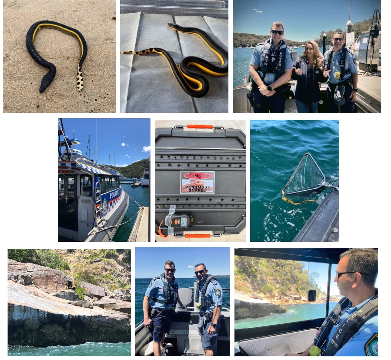 Scylla, the yellow-bellied sea snake also needed the assistance of the Water Police. Scylla was found lifeless on Narrabeen Beach by two lovely young ladies who stayed with her until help arrived. After a couple of weeks in care, she was ready to be returned to the sea. As yellow-bellied sea snakes are ‘pelagic’ (meaning of the open ocean) she needed to be taken far out into open water. Who better to take us out through the Heads than our wonderful Water Police? We were even treated to a viewing of seals basking on the rocks just before going through the Heads.