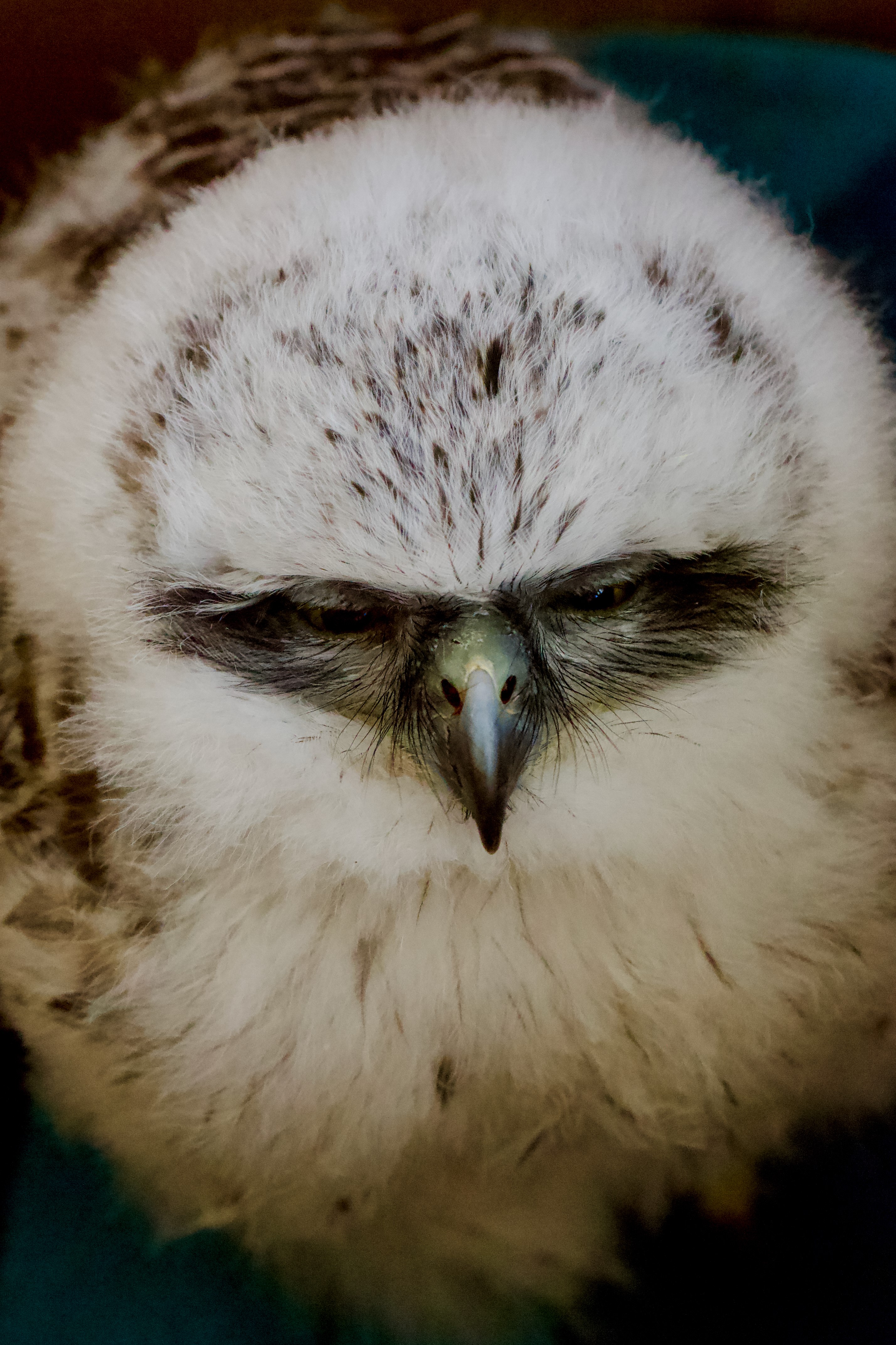 The vertical marks visible on the top of the adolescent owl’s head are holes resulting from the dog’s teeth penetrating the owl’s skull.