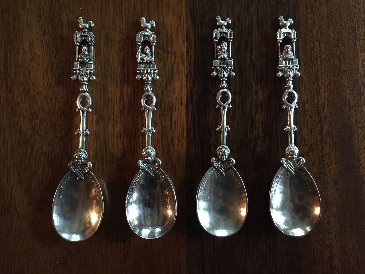 Apostle Spoons - L to R - Andrew, Bartholomew, Mathew, Thomas - photo by Hoppyh
