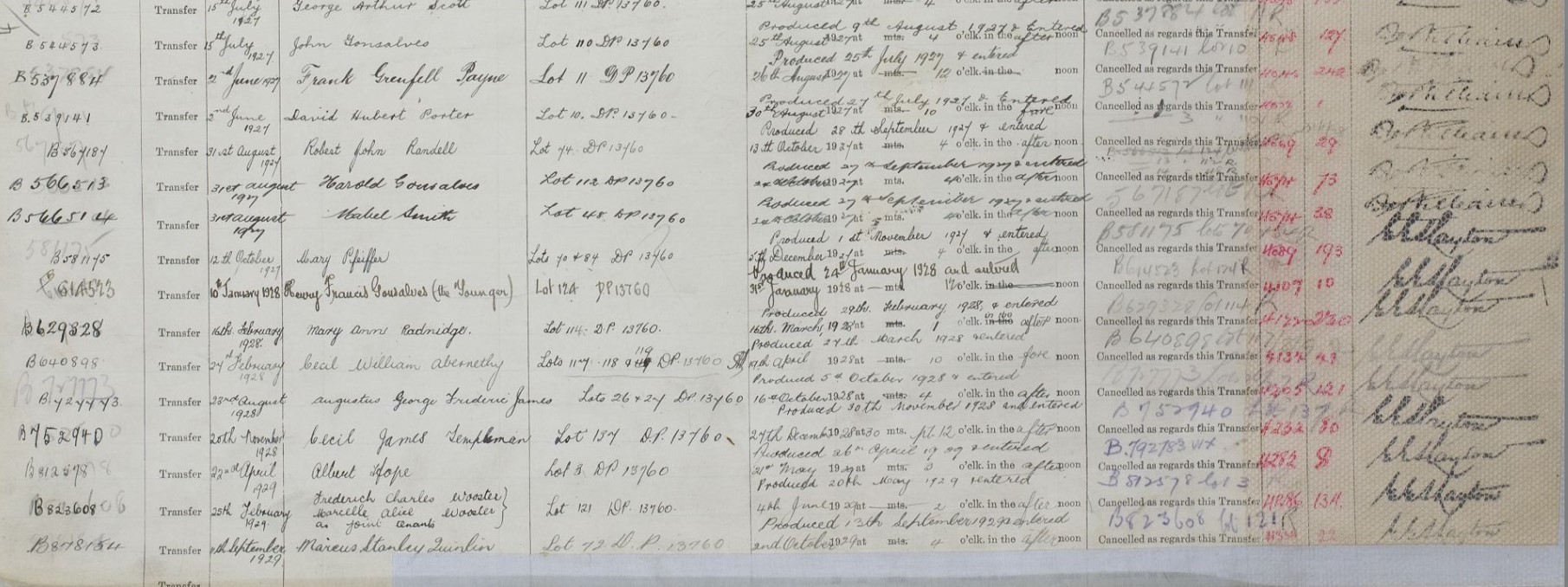 Volume 3777 Folio 60 land/lots sale records, including a member of the Gonsalves family and John Frederick Duffy, a descendant of the gentleman from whom the place-name 'Duffys Forest' comes from: