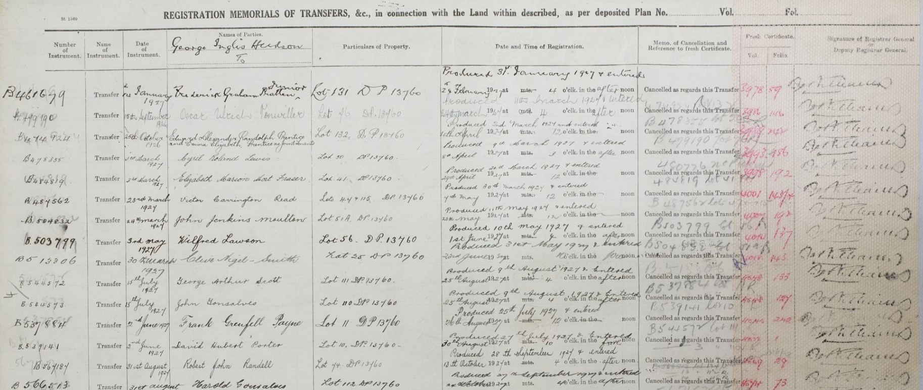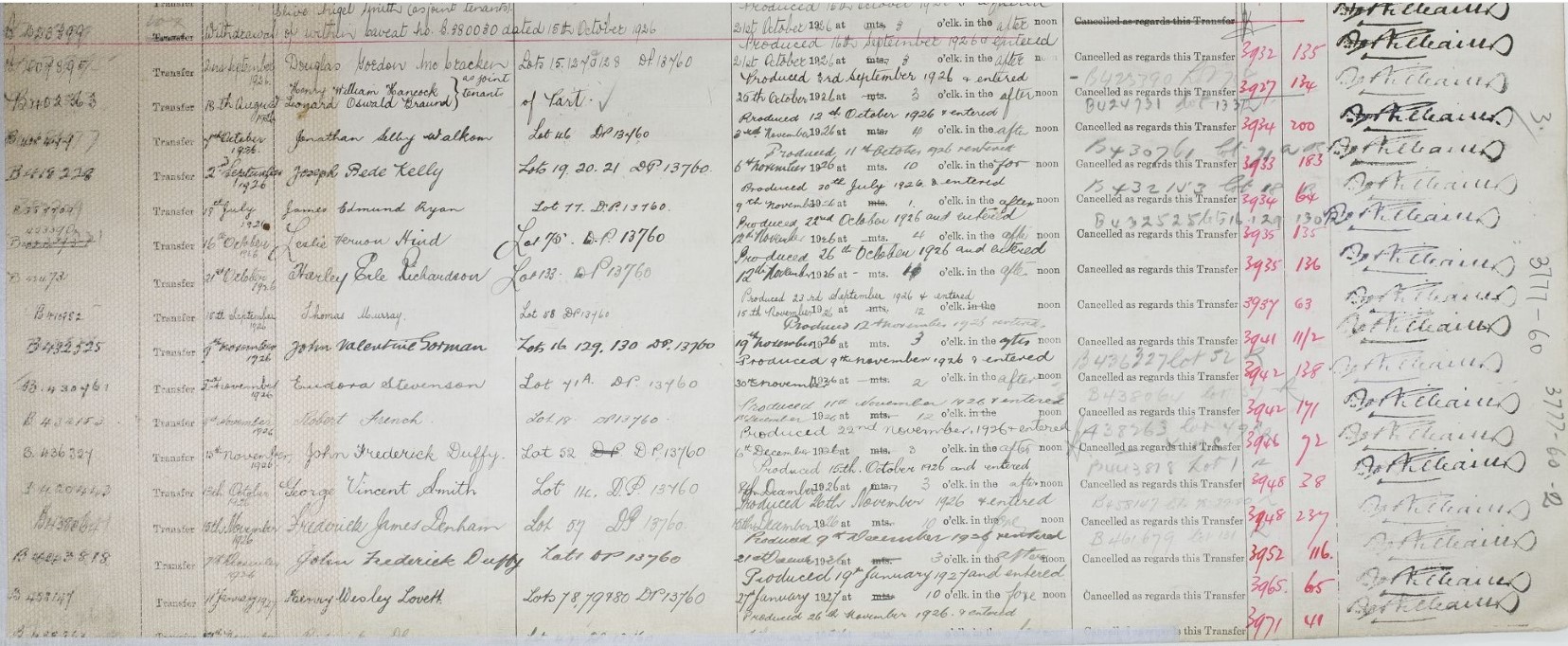 Volume 3777 Folio 60 provides who bought what lots of land and when: