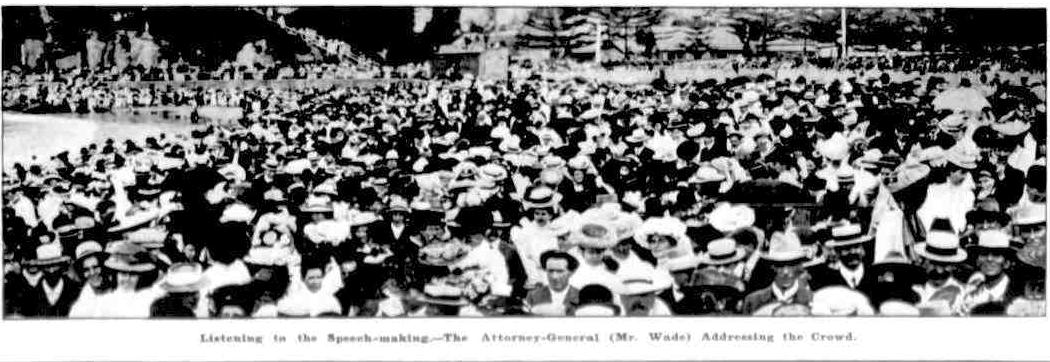 Listening to the speech-making - The Attorney General (Mr. Wade) Addressing the Crowd Launching the Surf Boat at Manly, March 23. (1907, March 27).Australian Town and Country Journal (NSW : 1870 - 1907), p. 20. Retrieved fromhttp://nla.gov.au/nla.news-article71590669