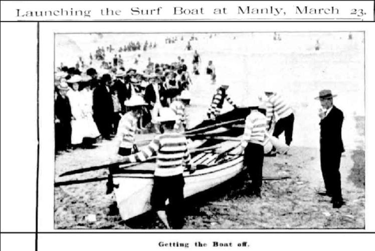 The Manly surf boat made its first public appearance in Manly on Wednesday evening. The craft, which was built to the order of the Manly Council at a cost of £31, was paraded through the streets on a waggon drawn by two horses. The boat is to be used for life saving purposes in the breakers at Manly, and will be manned by a crew under- the direction of the Brothers Sly. THE MANLY SURF BOAT. (1907, March 22). The Daily Telegraph (Sydney, NSW : 1883 - 1923), p. 8. Retrieved from http://nla.gov.au/nla.news-article238030337
